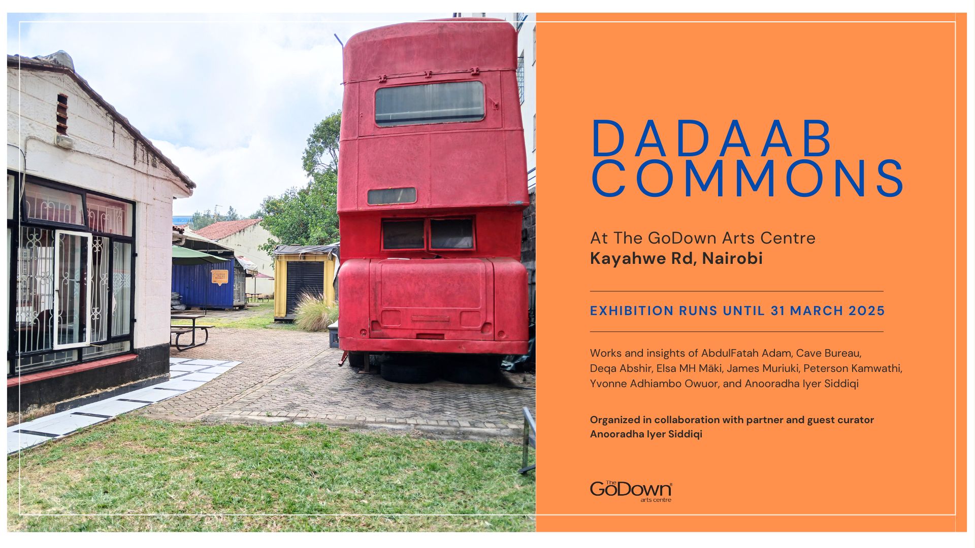 Dadaab Commons includes the works and insights of AbdulFatah Adam, Cave Bureau, Deqa Abshir, Elsa MH Mäki, James Muriuki, Peterson Kamwathi, Yvonne Adhiambo Owuor, and Anooradha Iyer Siddiqi, with contributions from Awjama Cultural Centre in Nairobi, Thirupurasundari Sevvel and Devika Prabhakaran of Nam Veedu Nam Oor Nam Kadhai in Chennai, Anjali Grant in Seattle, and Lauren Hardy in New York. Dadaab Commons is organized by the GoDown Arts Centre and partner and guest curator Anooradha Iyer Siddiqi. Organic materials from the exhibition will be donated to the local community for cooking fuel and building material.